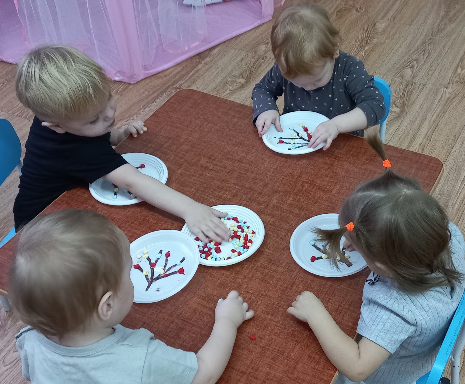опускать в краску кончик пальца и ставить отпечатки на листе бумаги. Прививали