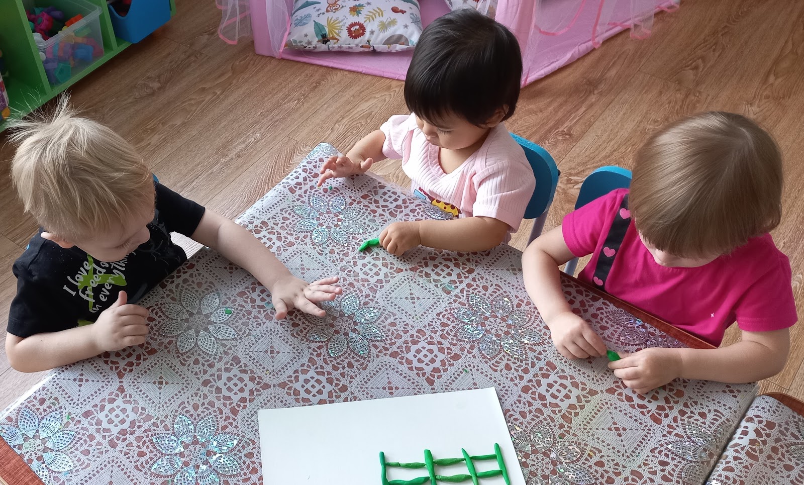 Сегодня ребята с большим интересом мяли пластилин, отрывая от него кусочки и раскатывали в виде «колбаски». При работе с пластилином развивается мелкая моторика, усидчивость, творческое мышление. Лепка для детей не только веселое и увлекательное, но и очень полезное занятие.