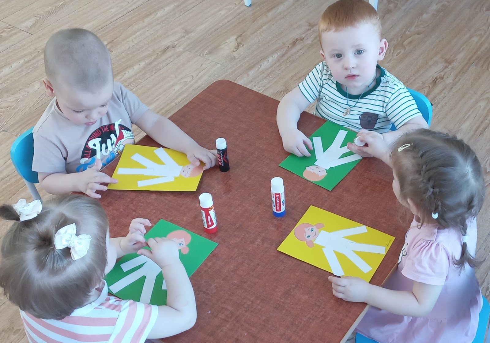 Перед тем, как заняться творчеством, мы провели разминку «Мы ногами топ, топ,